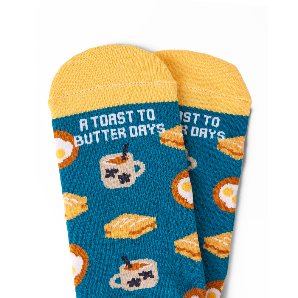 The Local Breakfast Sock features kaya butter toast, soft-boiled eggs, and traditional kopi (coffee), a beloved local breakfast meal that every Singaporean would be familiar with. Let's toast to butter days!