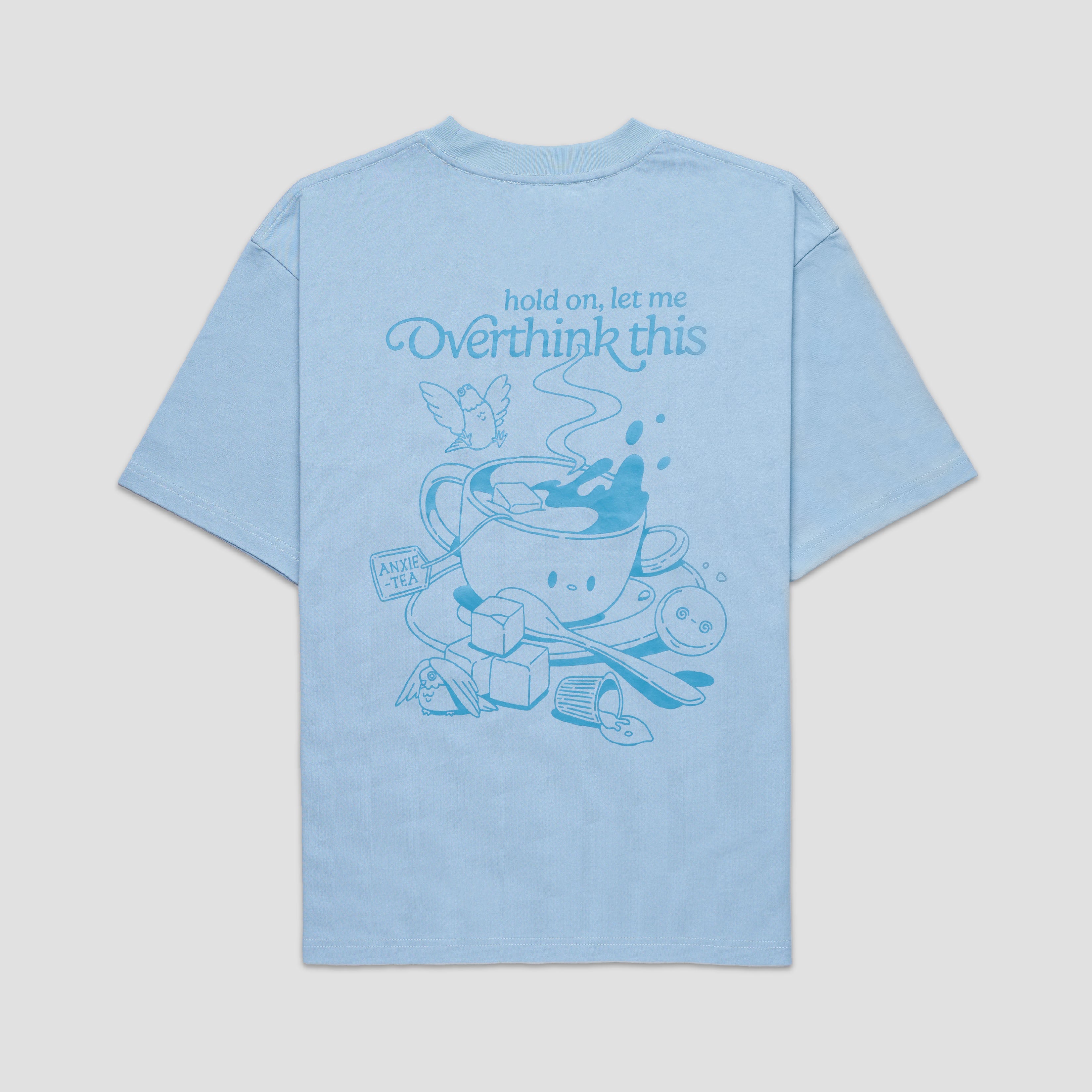 Brewing Anxie-Tea Oversized Tee - Puddle Blue